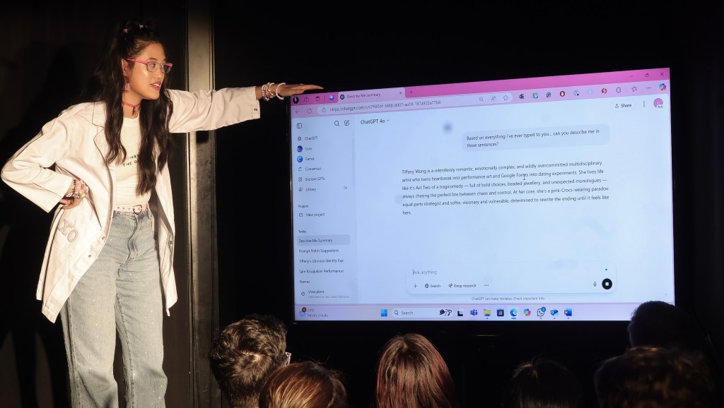 What happens when you let AI choose your soulmate? One (youngish) gal hands over her heart – and her data – live on stage.